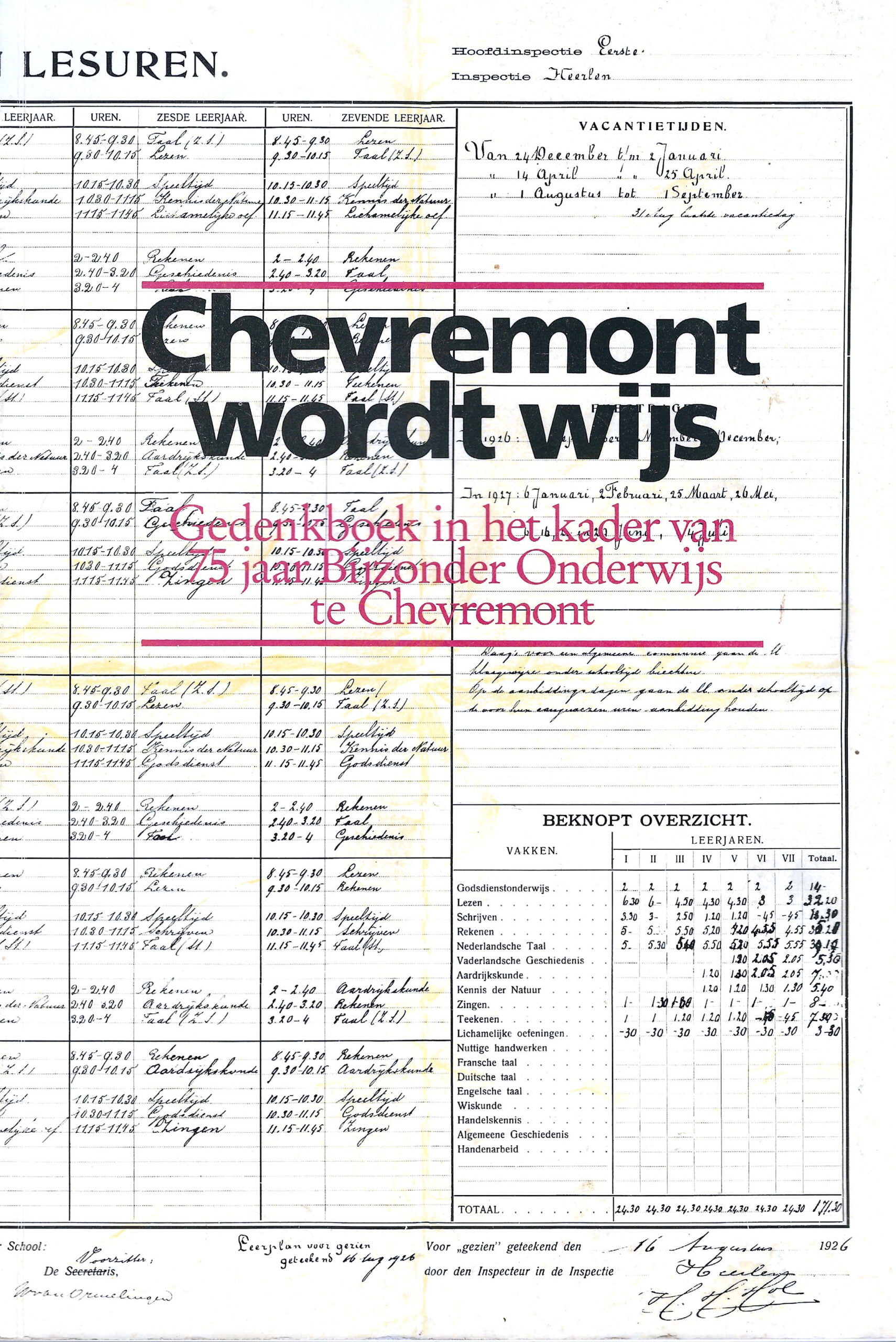 Dit boekwerk wordt uitgegeven ter gelegenheid van 75 jaar bijzonder onderwijs te Chevremont. Het gedenkboek wordt samengesteld door Arno Römgens en op 7 september 1985 uitgegeven in een oplage van 1500 stuks.